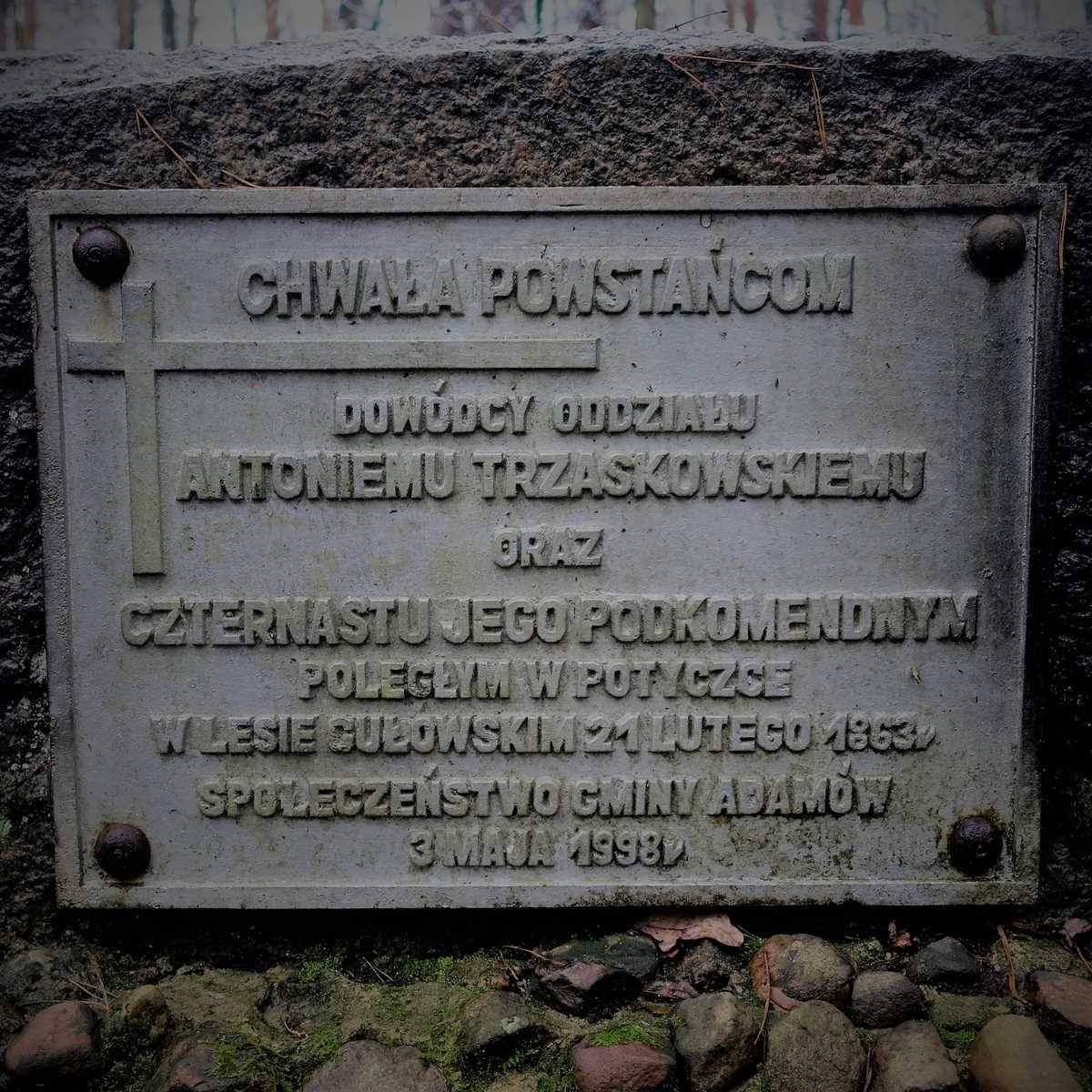 W Lesie Gułowskim, na skraju gminy Adamów, pomiędzy Lipinami a Wolą Okrzejską, znajduje się mogiła powstańców styczniowych. To tutaj spoczęli polegli 21 lutego 1863 r. Antoni Trzaskowski i jego czternastu towarzyszy.